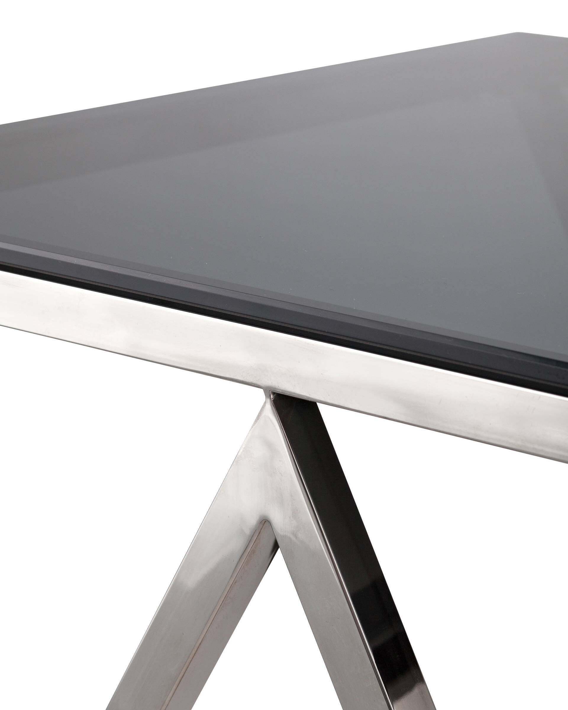 Журнальный стол "Insigniya" - это элегантное и стильное дополнение к интерьеру любой комнаты. Он имеет практичный дизайн и изысканный внешний вид. Стол имеет квадратную форму и изготовлен из качественной стали темного хрома, а верхняя поверхность из закаленного стекла с эффектом "дымчатого" цвета. Стол имеет прочную конструкцию, а также практичные откидные детали для большего удобства. Этот стол будет прекрасным дополнением к вашему дому.