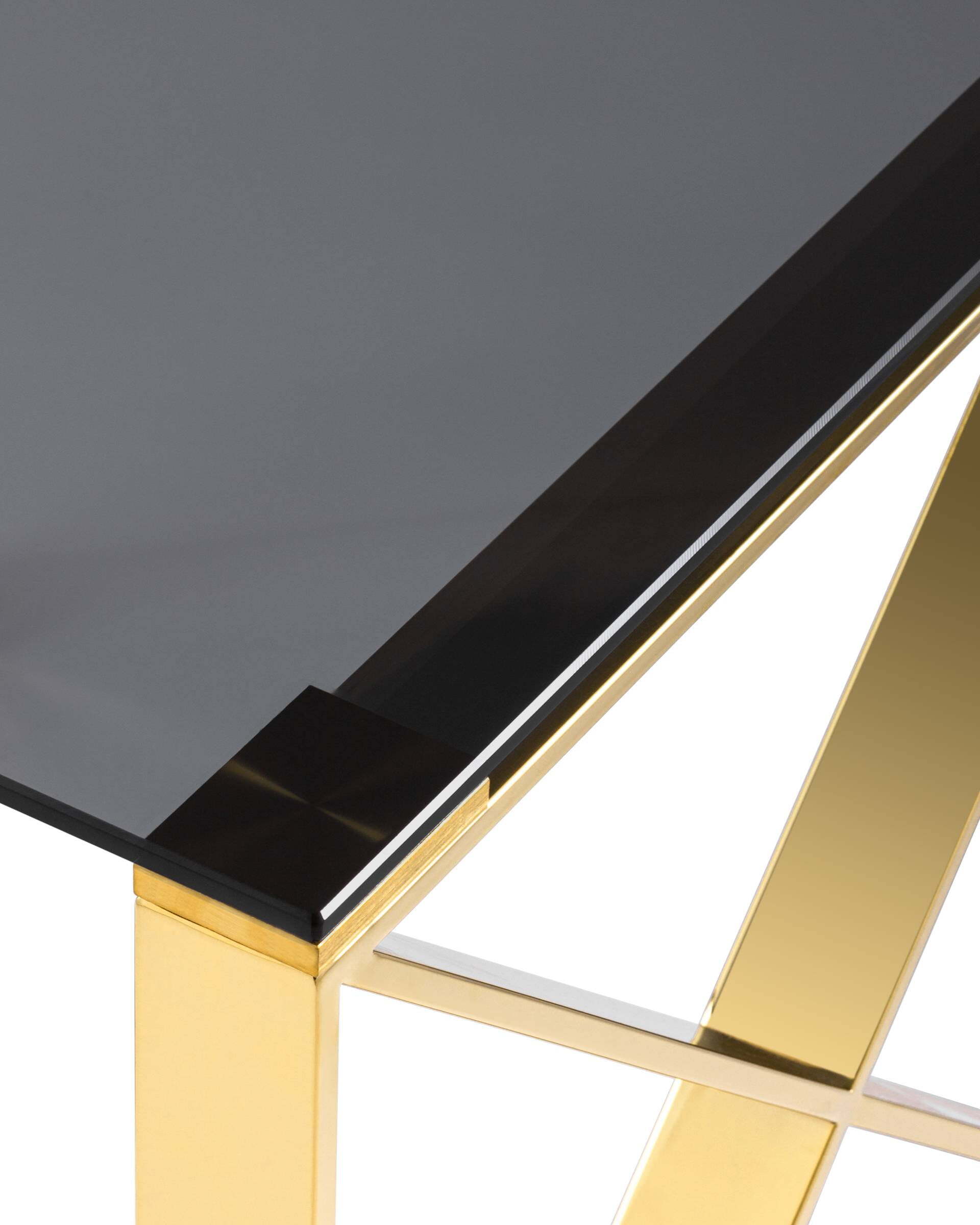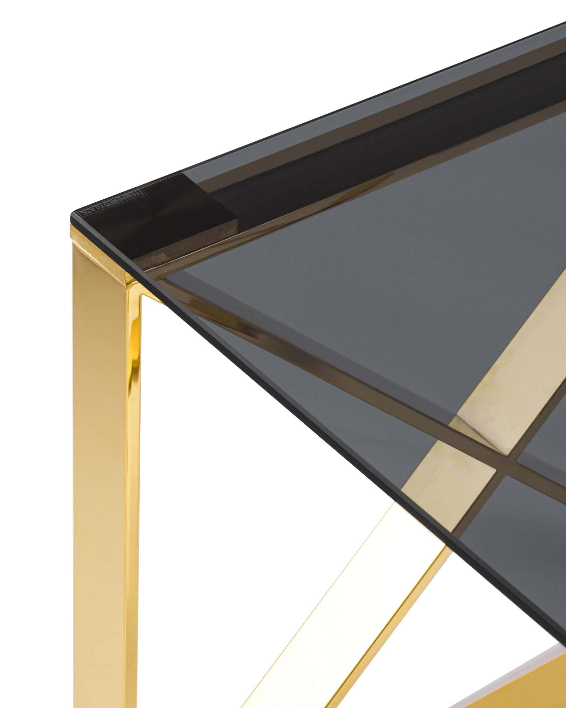 Журнальный стол 55*55 Кросс – это стильный и практичный предмет мебели, который подчеркнет индивидуальность Вашего интерьера. Он изготовлен из высококачественного материала, который долго сохраняет первоначальный вид. Основание изготовлено из металла цвета золото, а верхняя поверхность изготовлена из закаленного стекла цвета smoke. Стол удобен в использовании и прослужит Вам долгие годы.