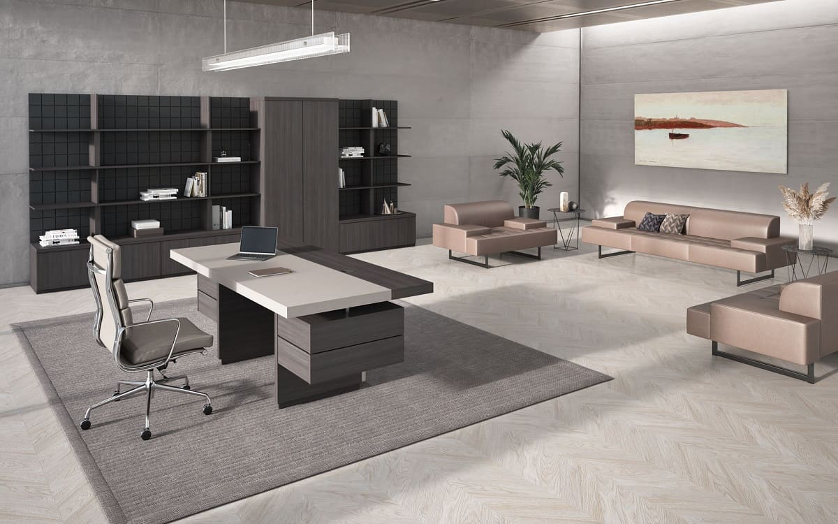 Кабинет руководителя Antey отличается правильными формами и строгими четкими линиями, что создает впечатление устойчивости и основательности. Использование кожаных панелей и изысканных деталей придают мебели роскошный и элегантный вид, способный украсить любой офис. Массивные шкафы и легкие консольные полки могут стать центральным элементом интерьера, подчеркивая статус и престиж владельца. Эта коллекция — воплощение красоты и функциональности, удовлетворяющее самые высокие требования к качеству и дизайну.