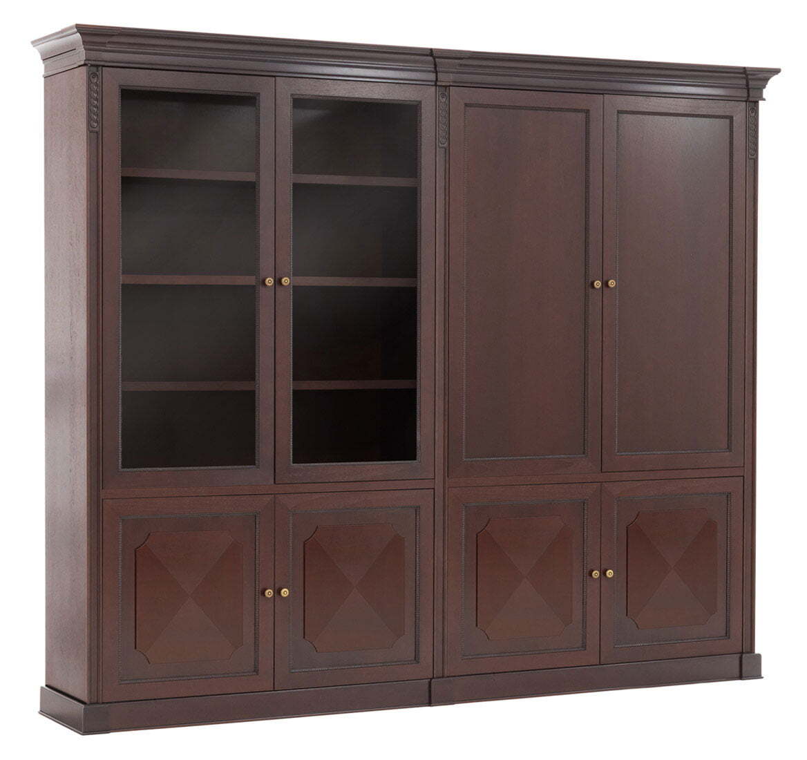 Doge шкаф-комбинированный 4 двери L279 - это прекрасный вариант для офиса или домашнего интерьера. Шкаф изготовлен из высококачественного материала, прочный и долговечный. Он имеет стильный дизайн с четырьмя дверями и двумя ящиками, предоставляя достаточно места для хранения различных предметов. Шкаф имеет белый цвет с коричневыми деталями, которые придают ему более стильный вид. Он идеально подходит для создания просторного и стильного офисного интерьера.