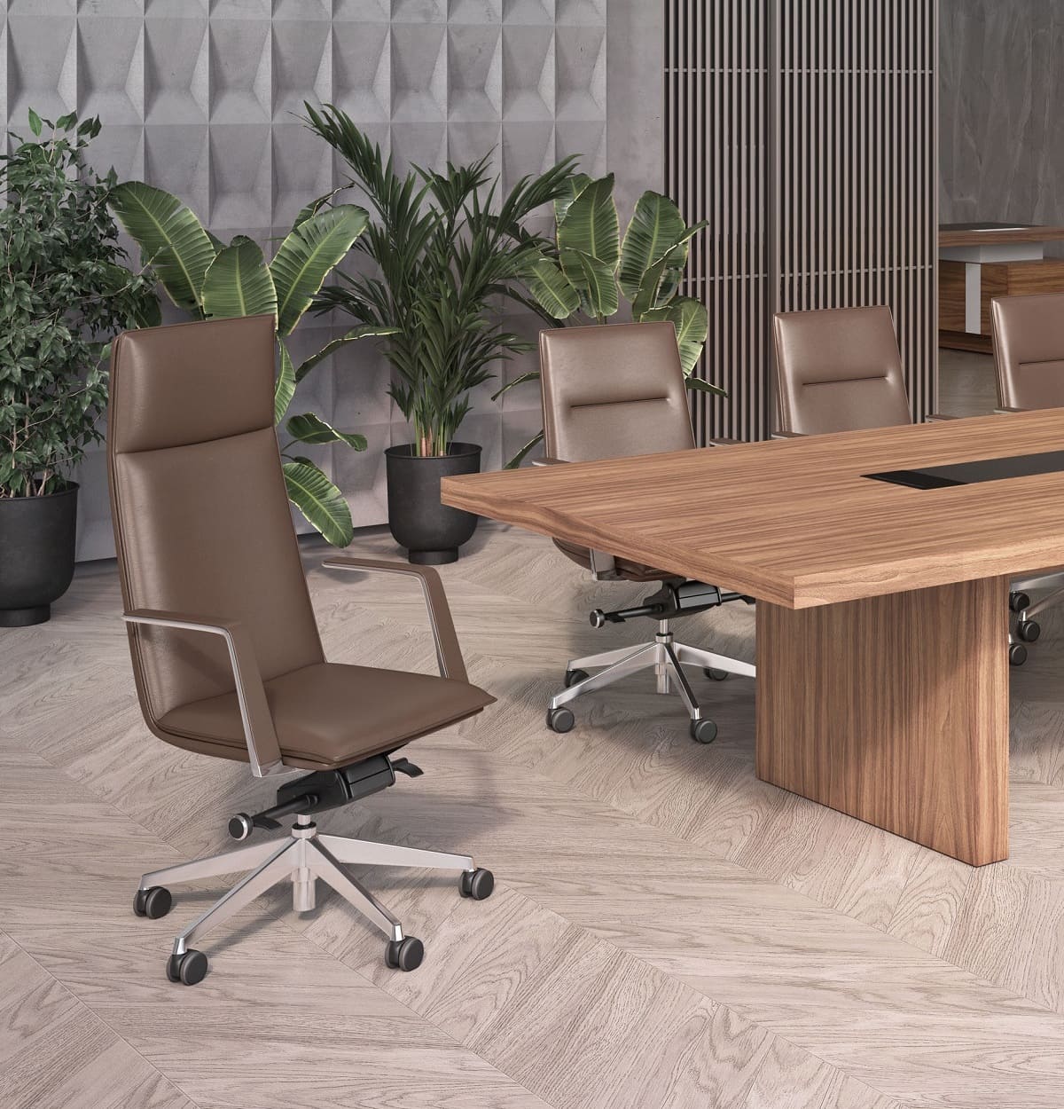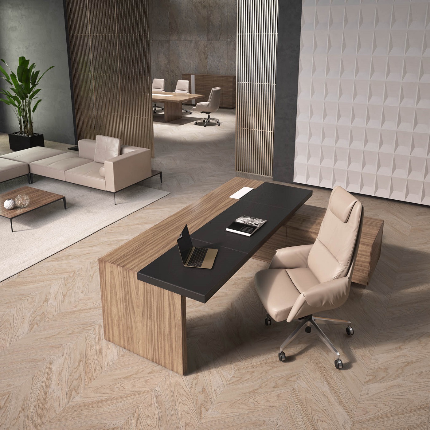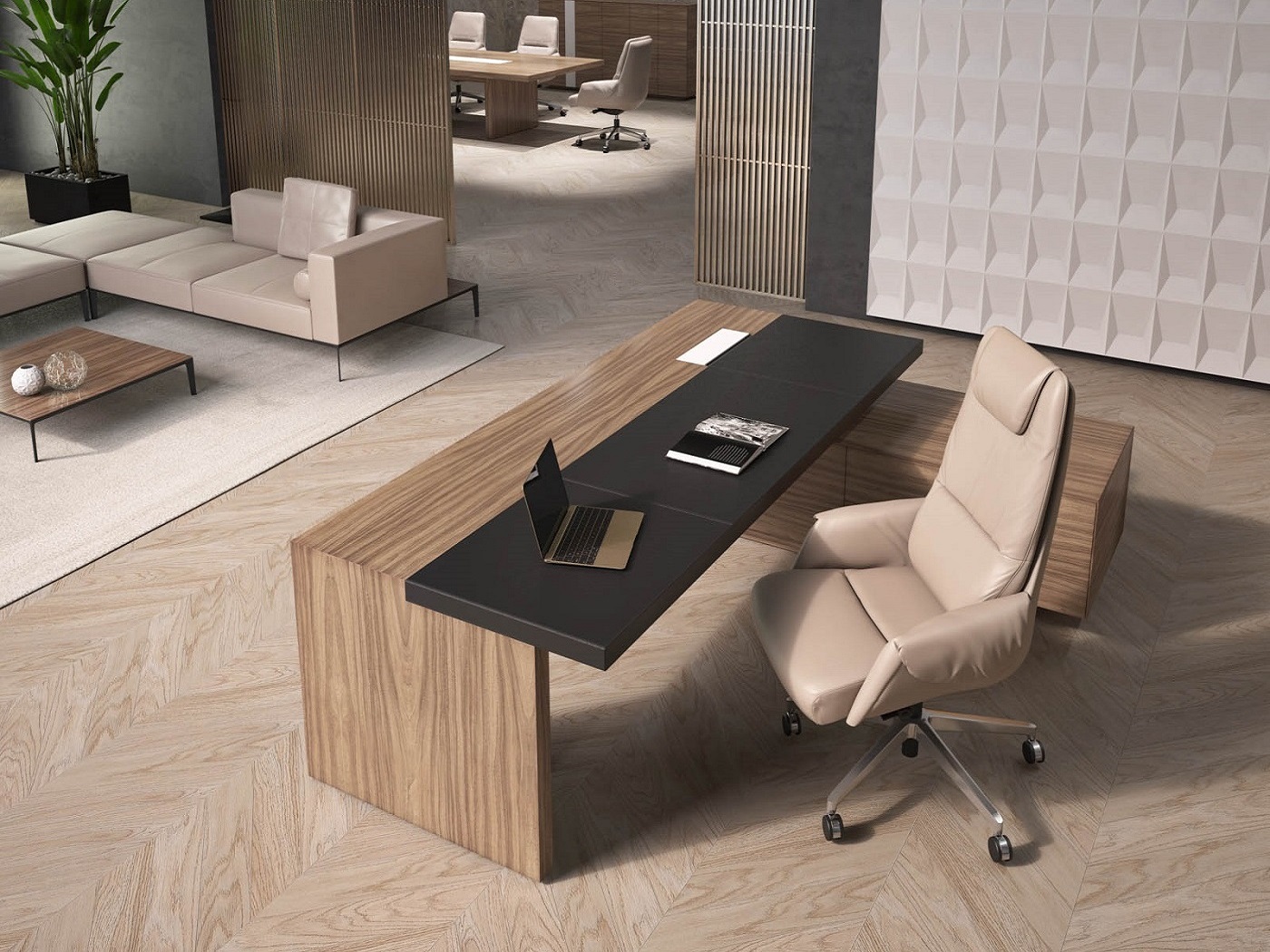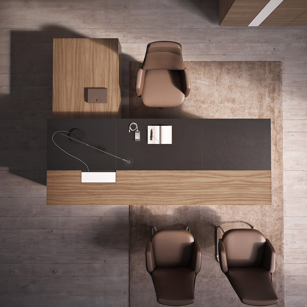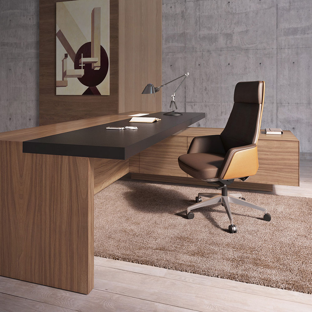 Cвободные, открытые пространства современных офисов требуют мебели, отражающей актуальные тенденции в дизайне. Кабинет руководителя Galaxy станет идеальным дополнением к новой архитектуре интерьера. Ясные линии, лаконичная форма и неповторимое сочетание материалов делают эту мебель функциональной и эстетически привлекательной. Рабочие столы, будучи главным элементом коллекции, поразят оригинальным дизайном, тонкой обработкой и гармоничными цветовыми решениями. Кожаные вставки черного цвета придают столам руководителя и переговорным столам элегантность, обеспечивая комфорт и удобство в работе, превращая каждодневные задачи в истинное наслаждение.