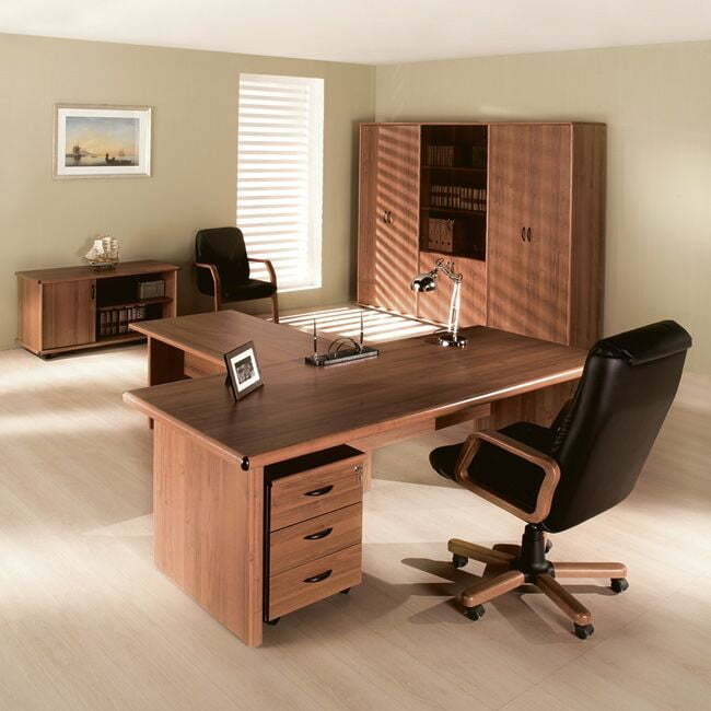 "Престиж" - первоклассный кабинет для руководителя, который отлично создаёт рабочую атмосферу, что помогает настроится на выполнение рабочих задач. Данный кабинет является отличным выбором целеустремлённых и уверенных в себе руководителей. Одними из особенностей данного кабинета являются оригинальный дизайн столешниц с использованием МДФ-профиля и декоративных вставок из черного цвета в углах. В ассортименте коллекции имеется большой выбор столов и шкафов, что открывает широким возможностям компоновки мебели.В производстве коллекции используется ЛДСП, кромка ПВХ толщиной 0,4 мм. Толщина столешницы 25 мм.