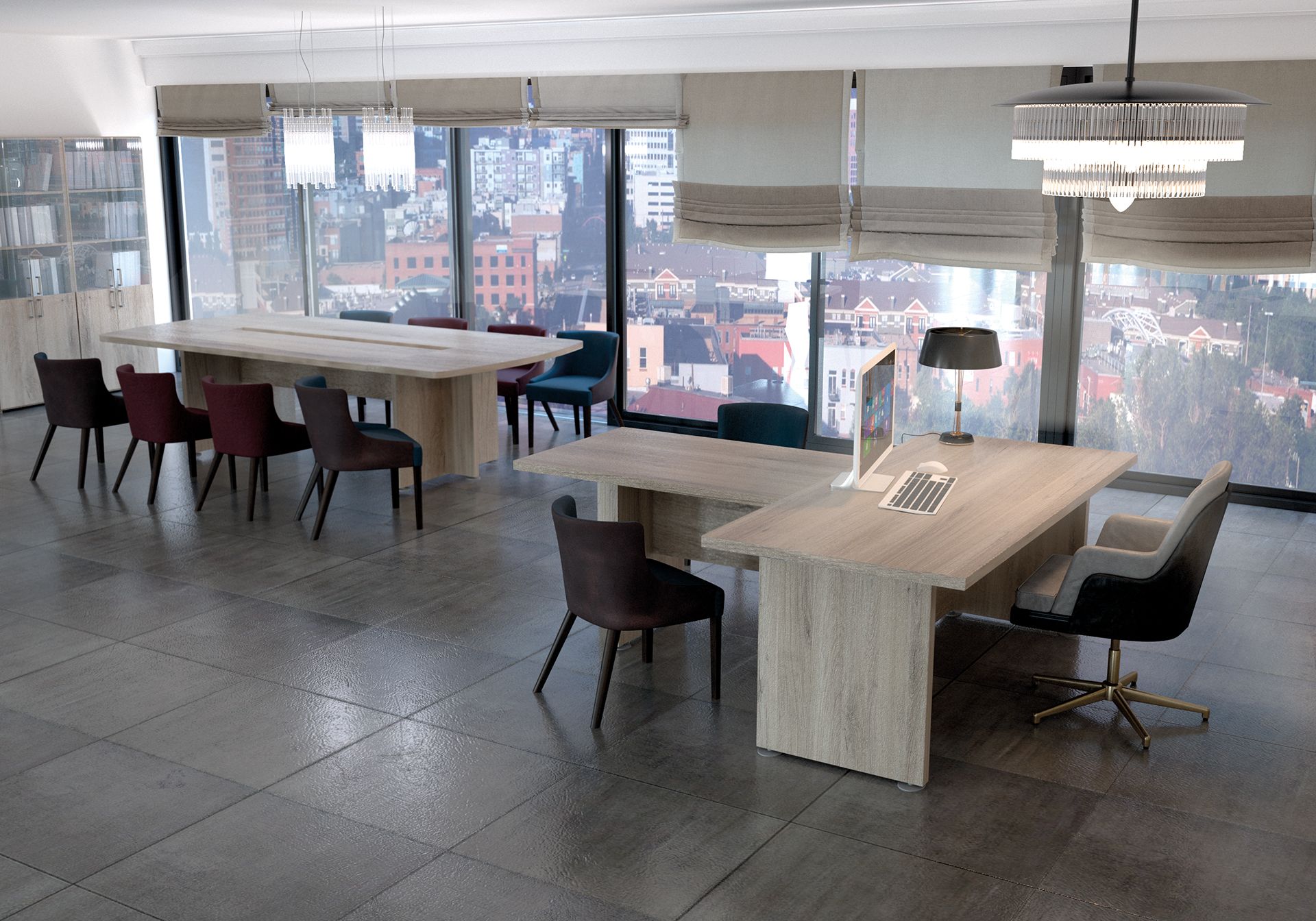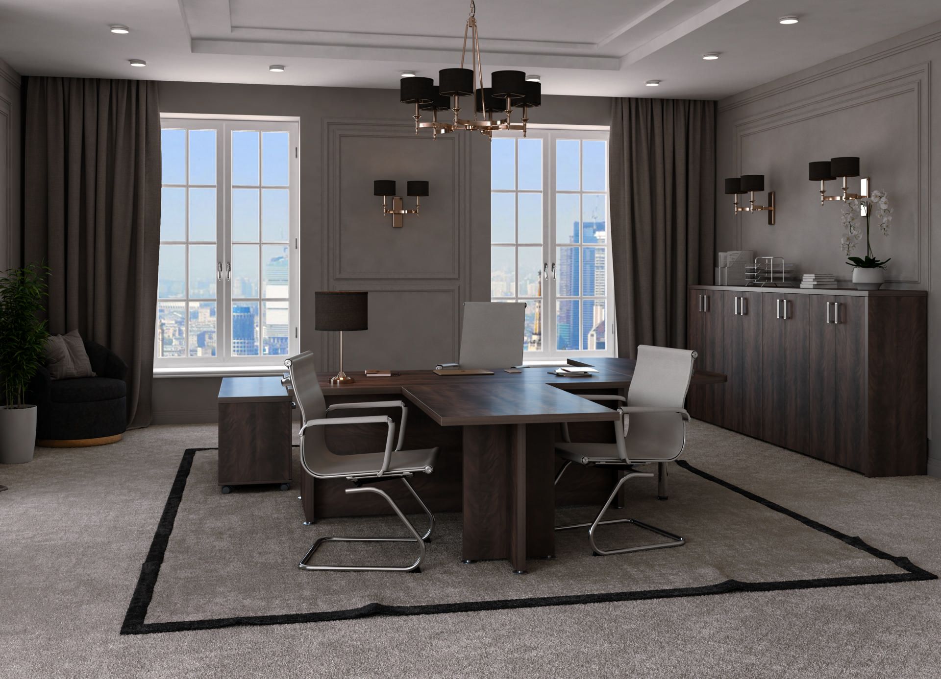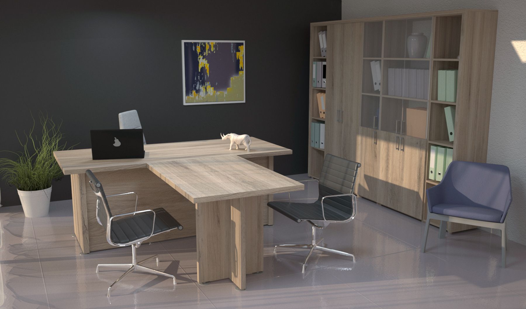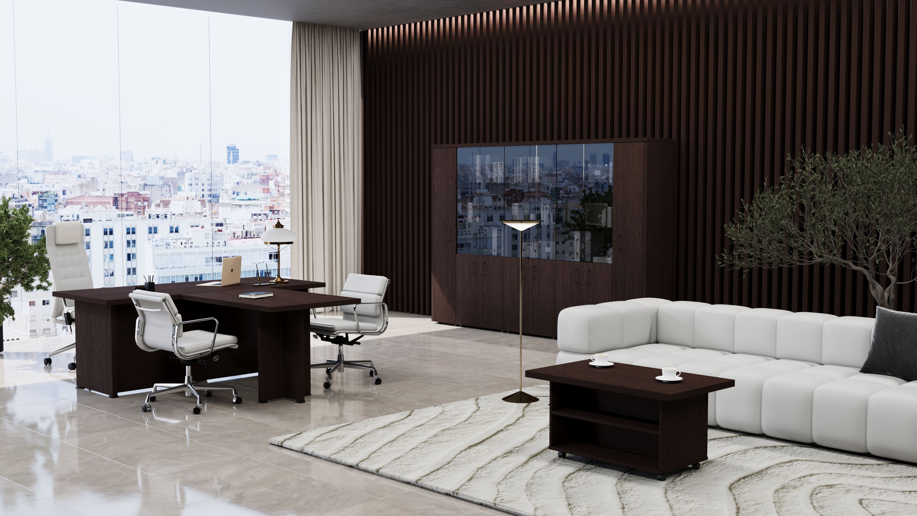 Коллекция мебели Приоритет - это элегантный и привлекательный в манере исполнения кабинет руководителя. Все элементы прекрасно дополняют друг друга, одновременно не ограничивая полет фантазии в их расстановке. Современный дизайн в стиле модерн словно переносит в кабинет руководителя динамичность и основные тенденции современного бизнеса. Мебель привлекательная еще и тем, что для установки не требуется идеальной гладкости поверхности. Причина проста – все опоры у столов и шкафов можно регулировать, тем самым выравнивая рабочую поверхность мебельного гарнитура.