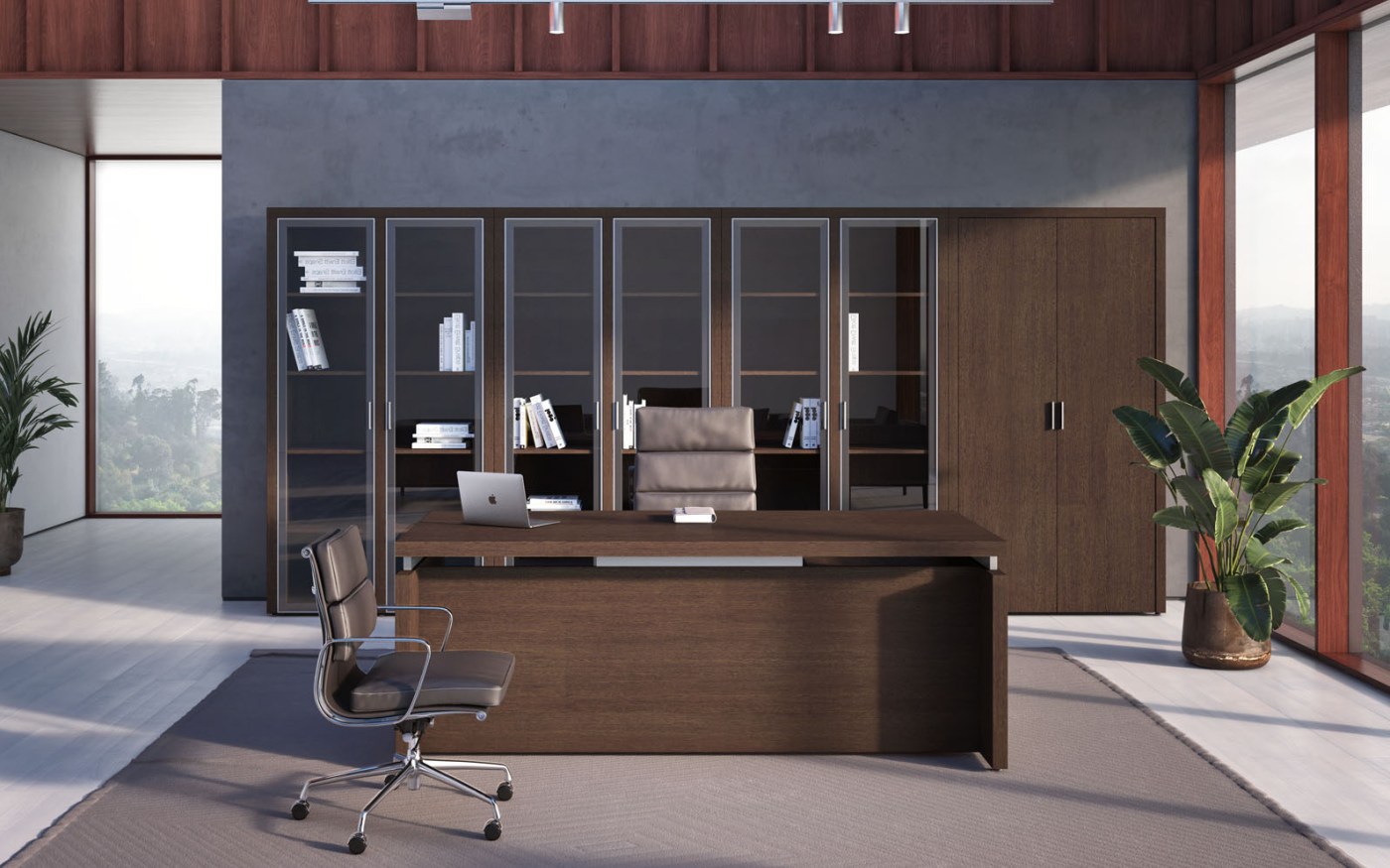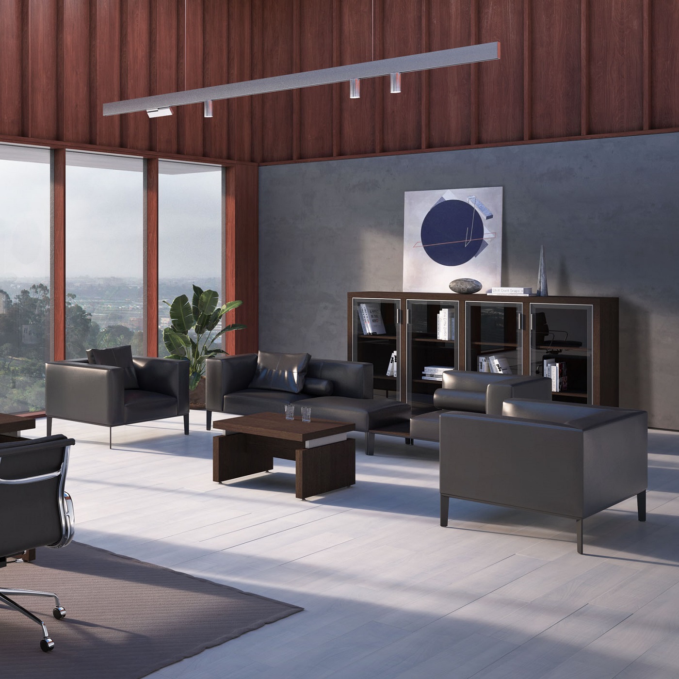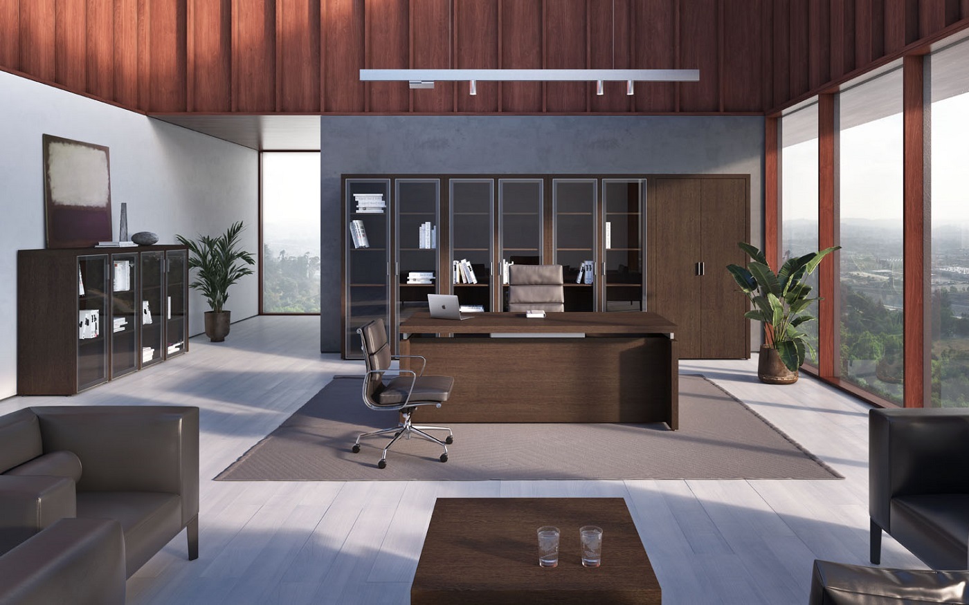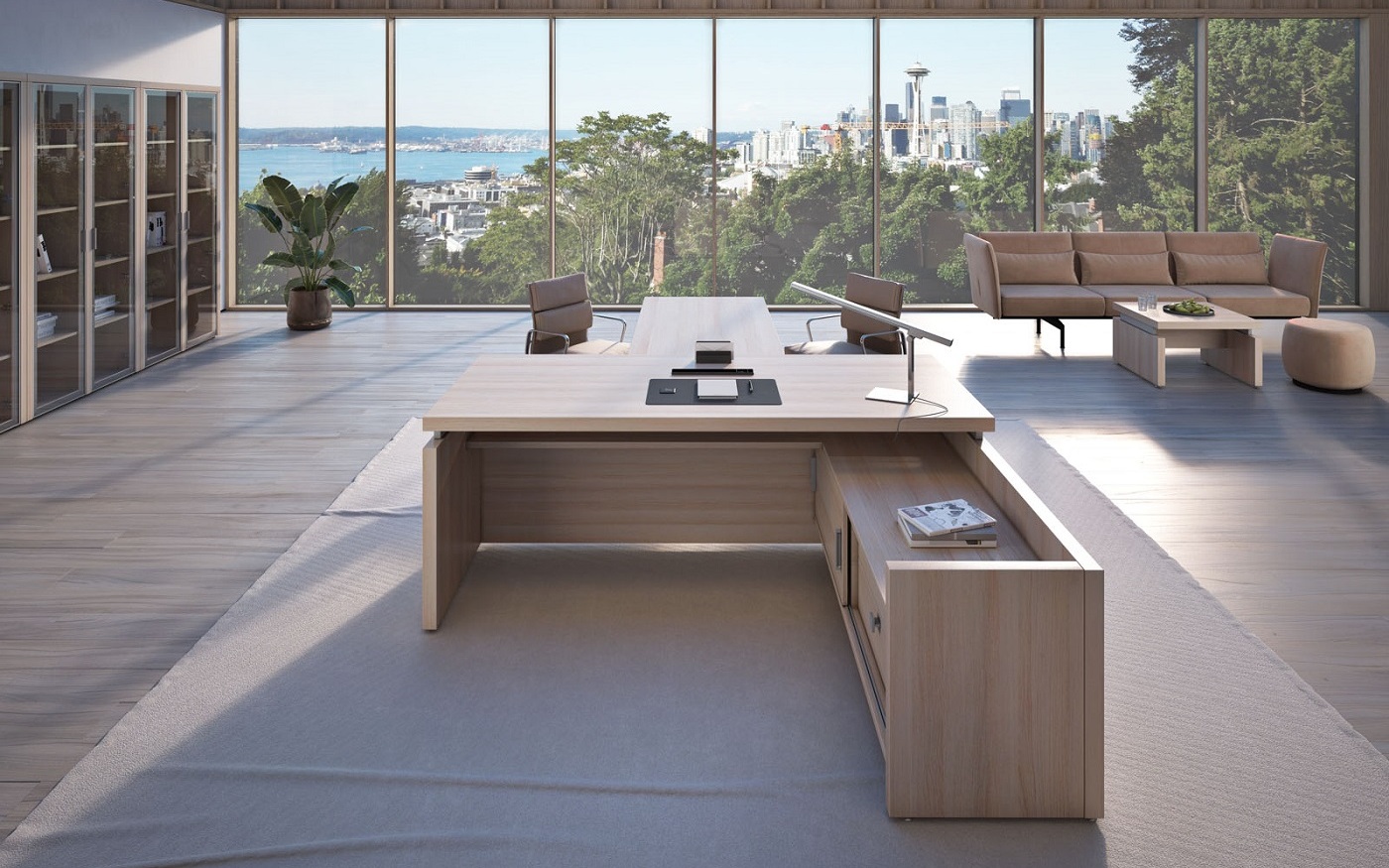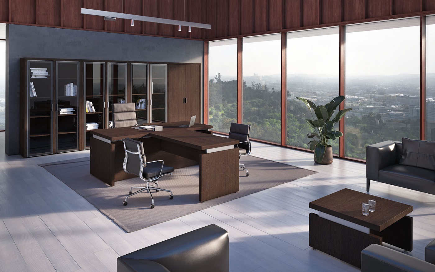 Кабинет руководителя Triumf отличается выразительными геометрическими формами и интеллектуальным дизайном, который визуально разделяет столешницу и каркасы, создавая ощущение легкости и пространства, способствующего творчеству и генерации идей. Гармоничное сочетание простоты линий и благородного контраста материалов подчеркивает, что владелец кабинета способен достигать значительных высот в любой сфере деятельности. Коллекция представлена в двух элегантных цветовых вариантах: благородный Венге ЦАВО, с его теплым оттенком и текстурой натурального дерева, и светлый, легкий Дуб 131, придающий интерьеру воздушность и свет.