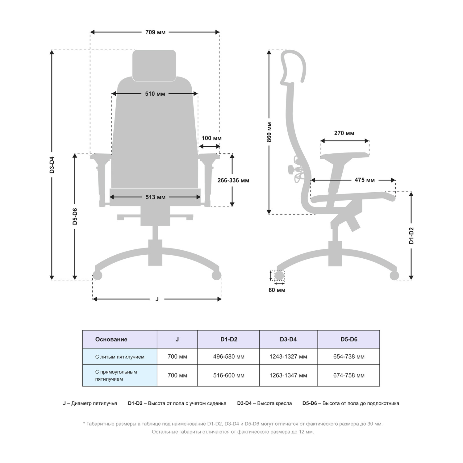 Высота спинки min (мм)