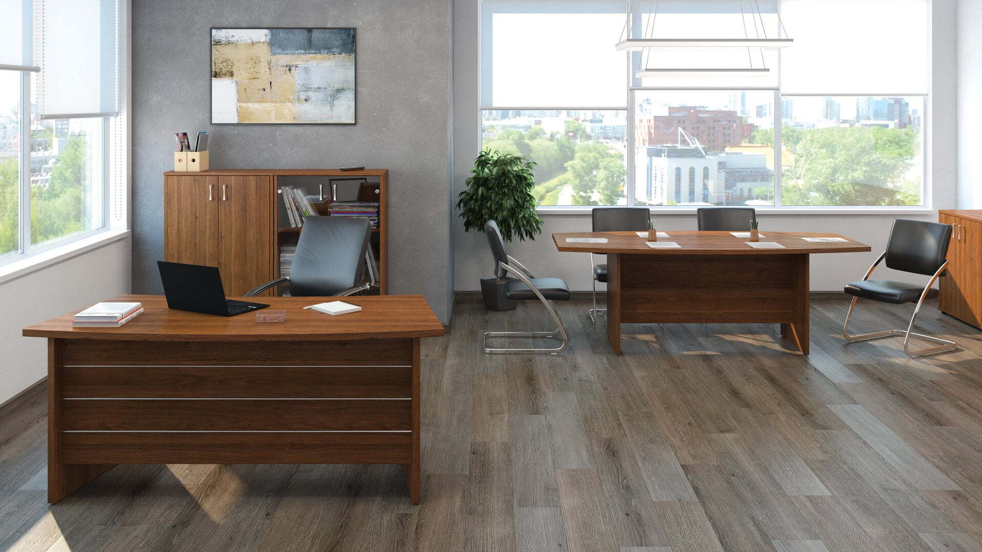 Мебель для переговоров Grand призвана подчеркнуть деловой имидж вашей компании и выделить ее среди конкурентов. Эта серия отличается современным дизайном, сочетающим утонченные вставки в столах и минималистичные формы, которые вместе создают атмосферу комфорта и стиля. Яркие и глубокие цвета мебели придают ей «богатство» и элегантность, подчеркивая высокий статус компании. Особое внимание уделено качественной сборке на эксцентриковых стяжках – это проверенная временем технология, обеспечивающая надежность и долговечность мебели Grand.