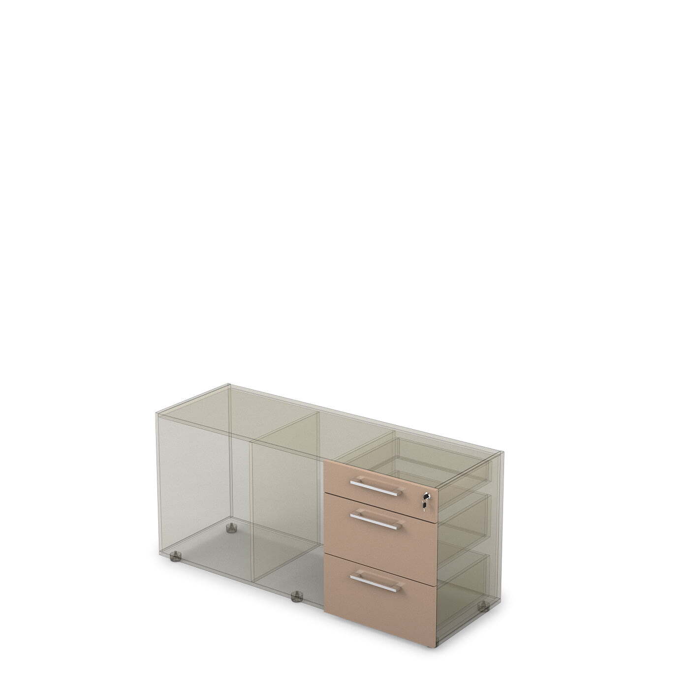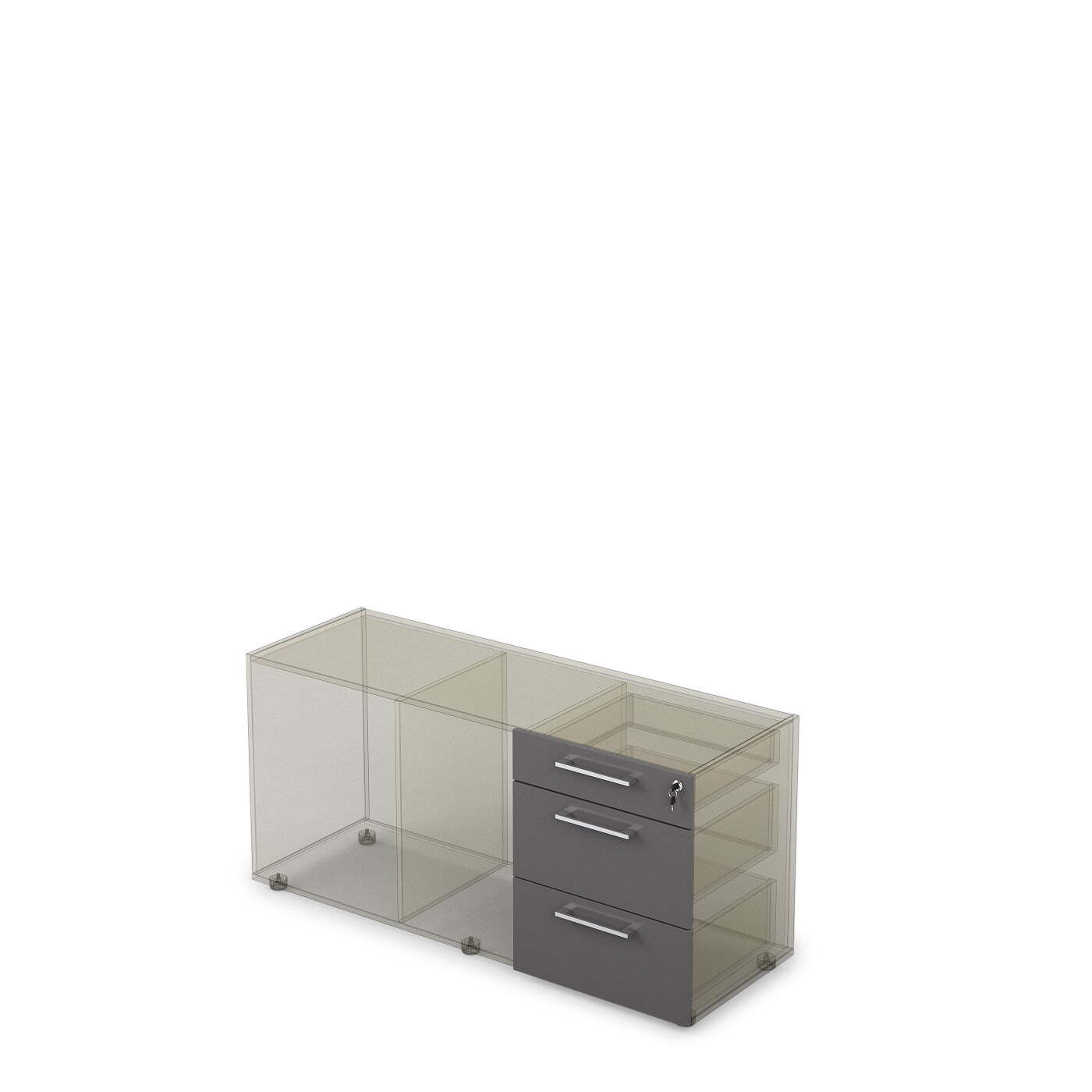Ящики для тумбы с доводчиком из серии ARREDO 10Т.005.2Д. Предназначены для комплектации тумбы опорной или тумбы греденции. У ящиков металические направляющие, которые оснащены доводчиками. Наличие доводчиков позволяет плавно закрывать ящики, избегая громкого и не комфортного звука удара ящика о корпус тумбы. В комплект входит центральный замок, который позволит закрыть тумбу целиком. Размер 477х416х596 мм. В наборе два ящика более глубокие и третий, верхний ящик, который предназначен для канцелярии.