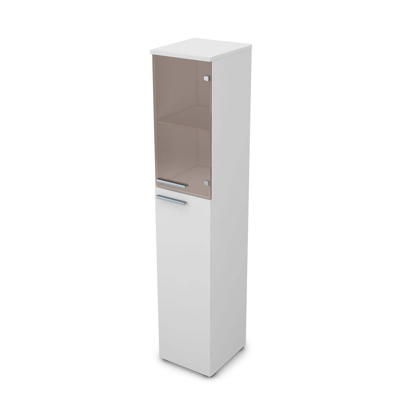 Этот высокий пенал со стеклянным дверцами является идеальным дополнением к офисной мебели. Он имеет простой и стильный дизайн в глянцевой белой окраске, который добавит изысканности и элегантности в любой интерьер. Он имеет объемные размеры 400x450x2045 мм, благодаря чему вы сможете хранить много документов и других предметов. Дверцы изготовлены из прочного стекла, которое предоставляет видимость внутренних ящиков. В комплект входит два ключа для безопасности и удобства.
