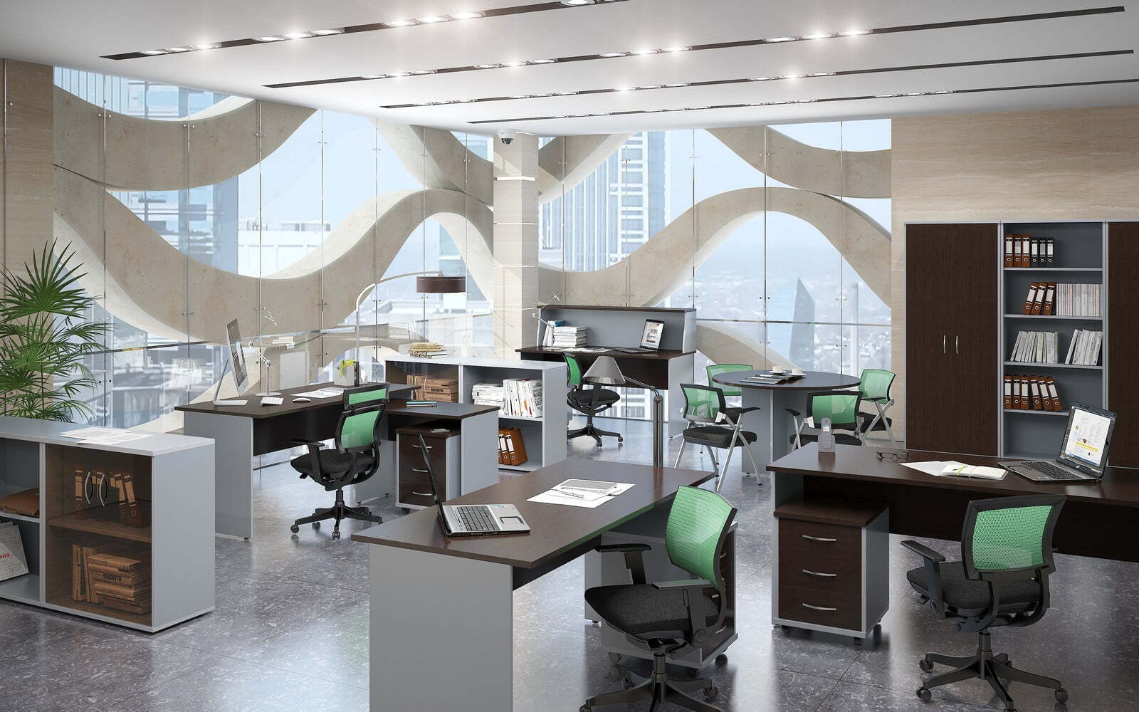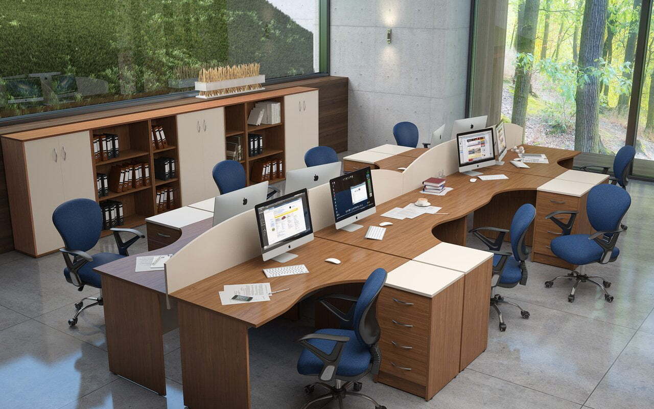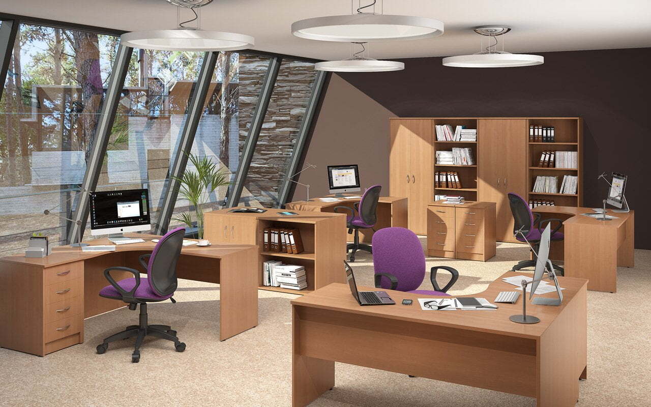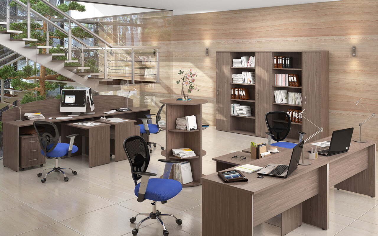 Изготовленная с применением ЛДСП, ХДФ и стекла, мебель формирует максимально комфортные, стильные и практичные рабочие пространства. Богатый выбор модулей и цветовых решений предоставляет возможность создавать оперативные зоны для любого количества специалистов и придавать интерьерам абсолютно уникальные черты.