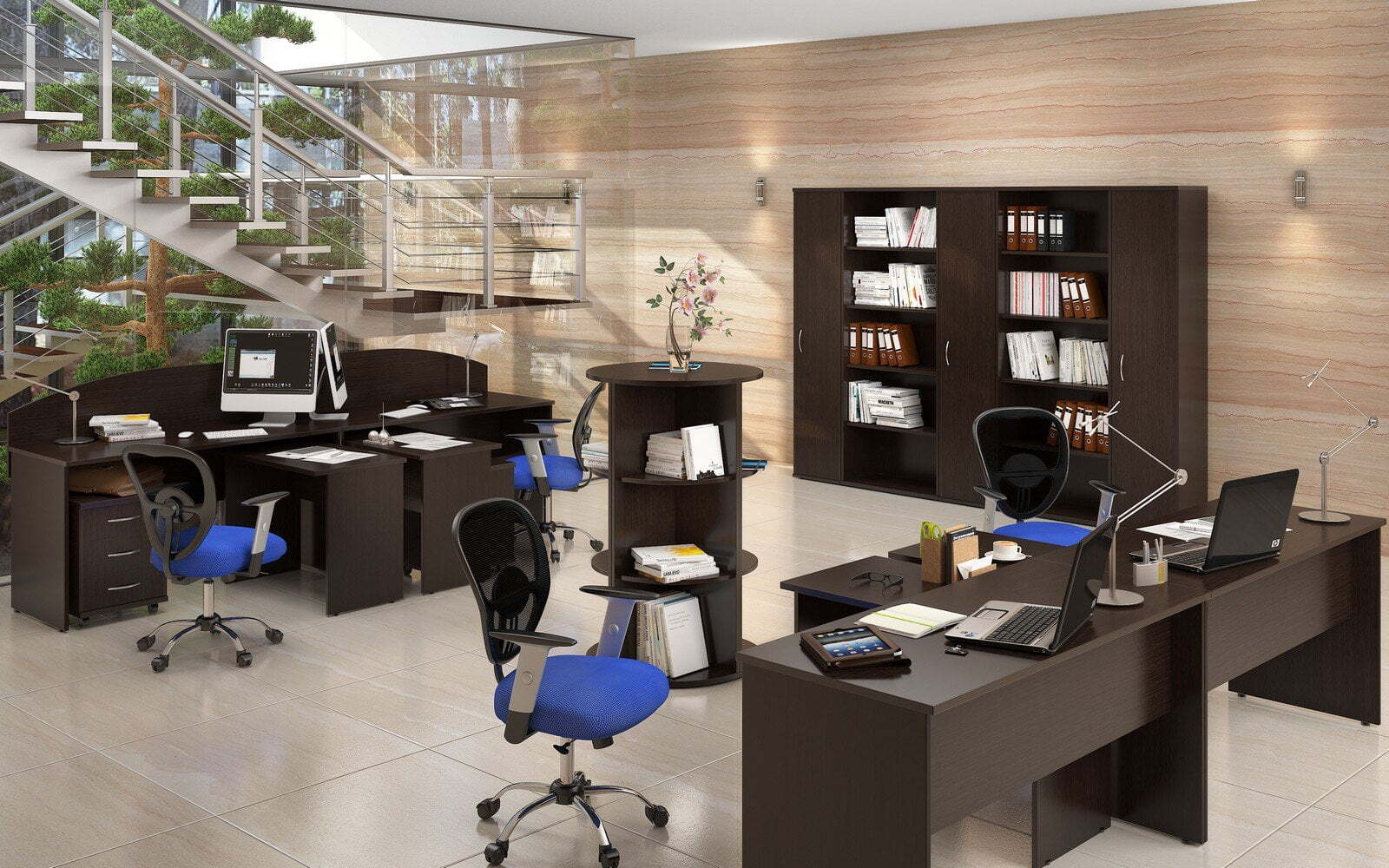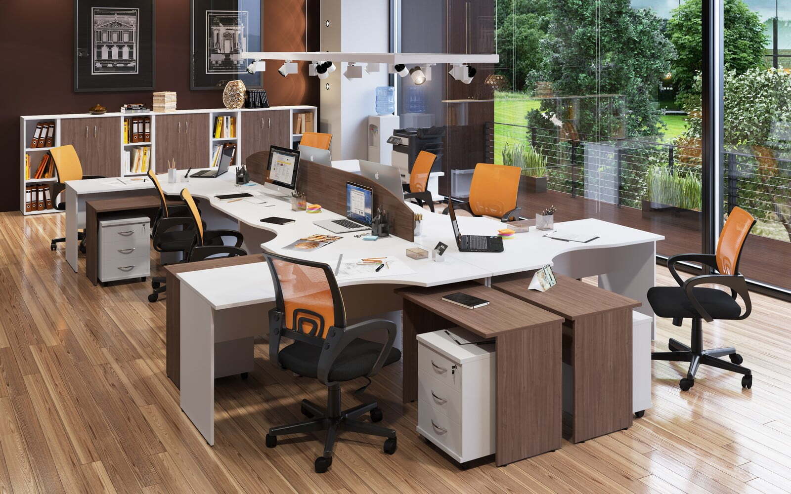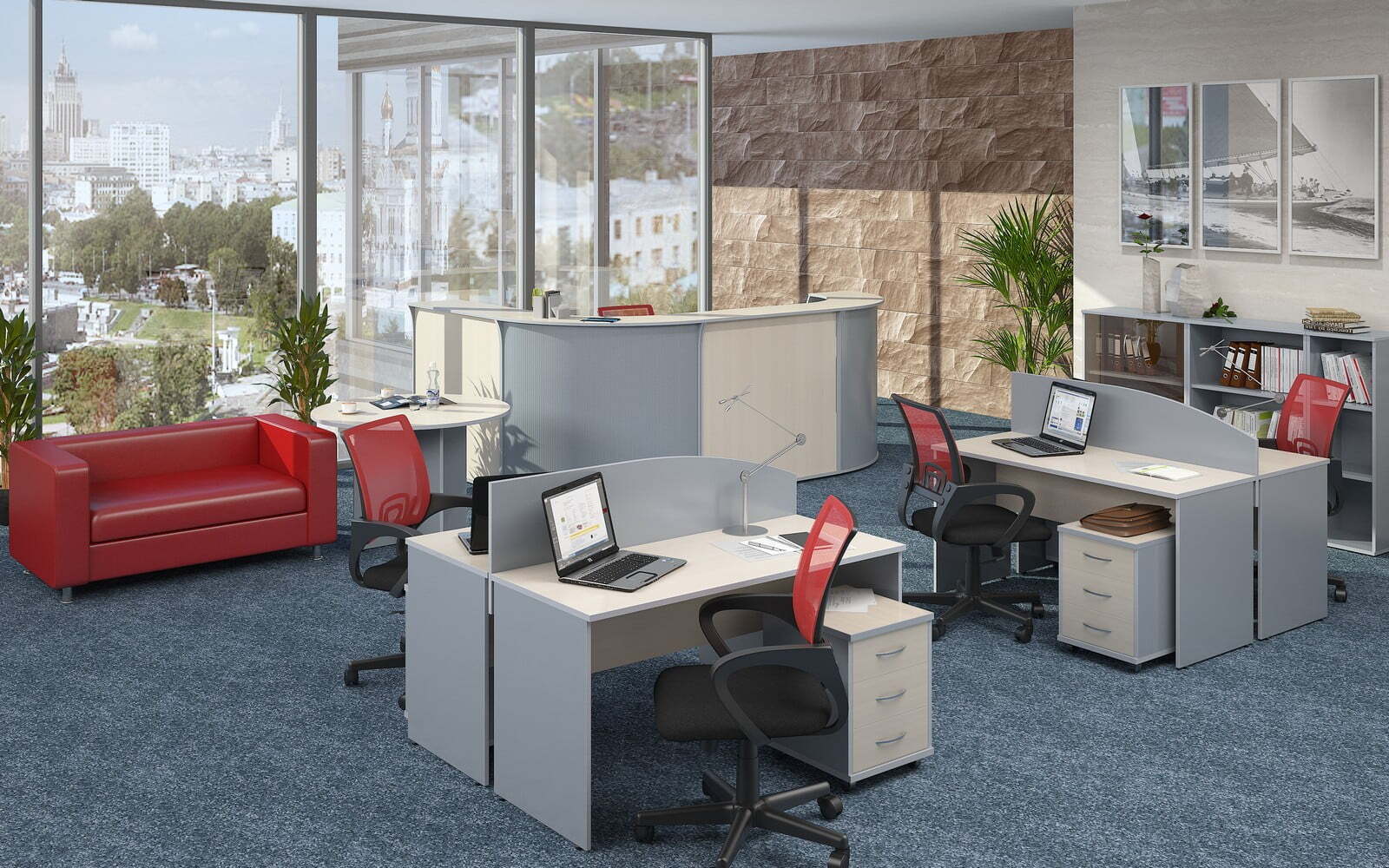 Изготовленная с применением ЛДСП, ХДФ и стекла, мебель формирует максимально комфортные, стильные и практичные рабочие пространства. Богатый выбор модулей и цветовых решений предоставляет возможность создавать оперативные зоны для любого количества специалистов и придавать интерьерам абсолютно уникальные черты.