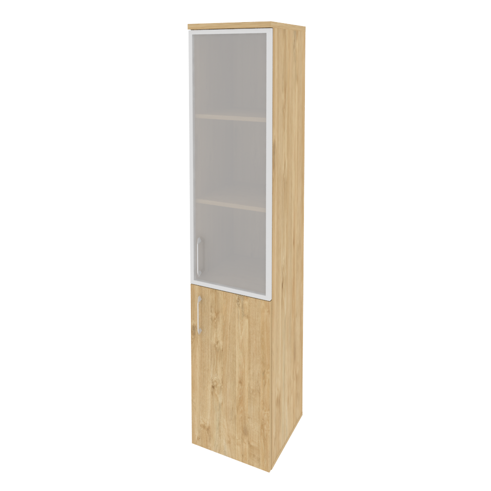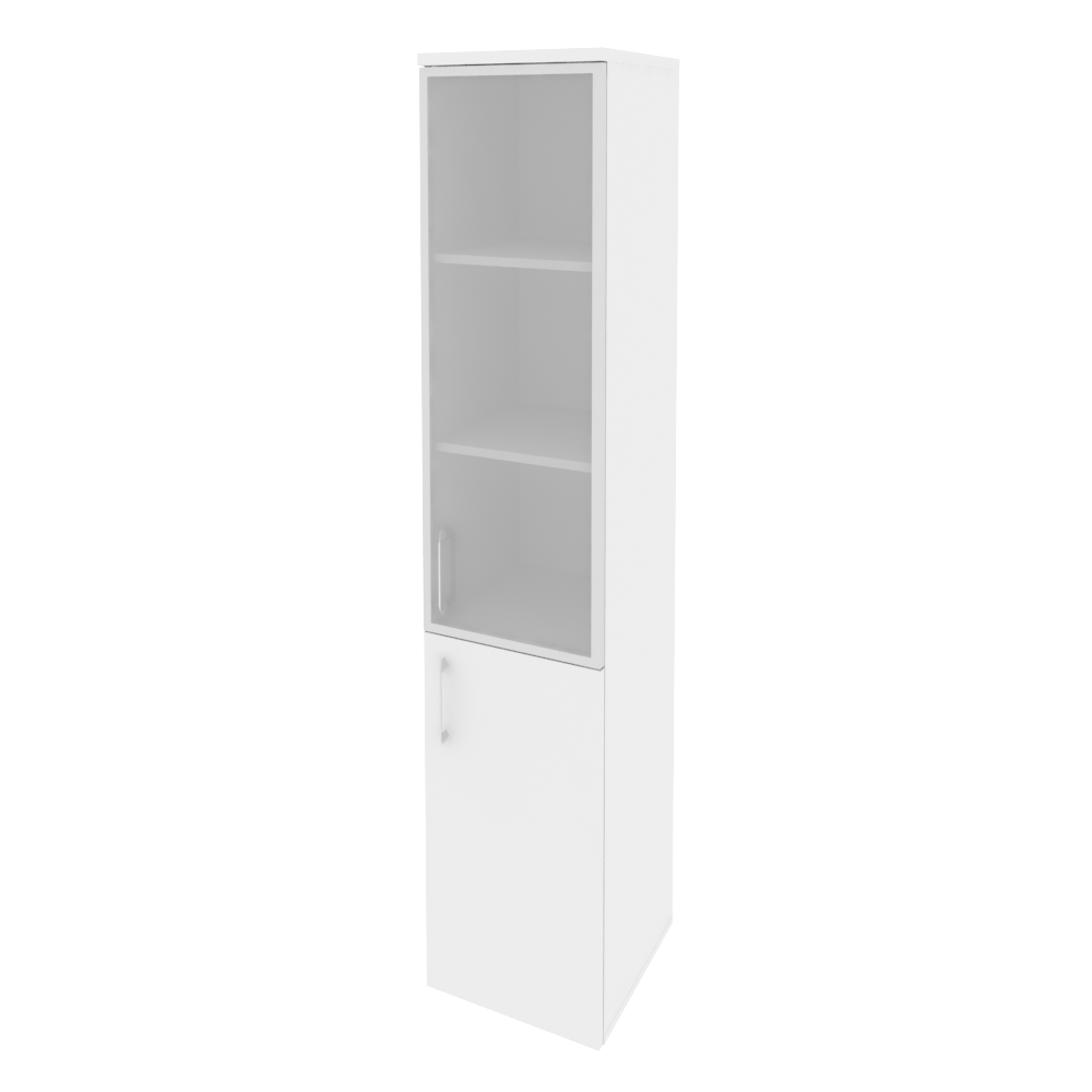 Шкаф высокий узкий правый О-СУ-1-2-R-R с габаритами 400х420х420 мм это практичный и стильный предмет мебели для офиса. Он имеет прочную конструкцию из ламинированной плиты цвета белый глянец. Внутри есть два ящика и две полки. Двери открываются на магнитных замках и подвешиваются на защелках. На дверях находятся элегантные золотистые ручки. Он будет отлично дополнять интерьер вашего офиса.