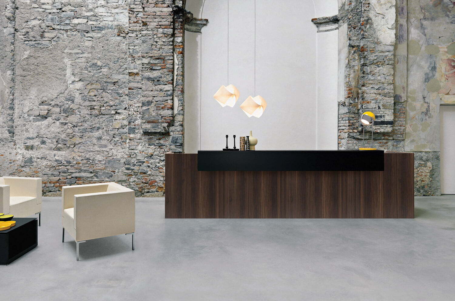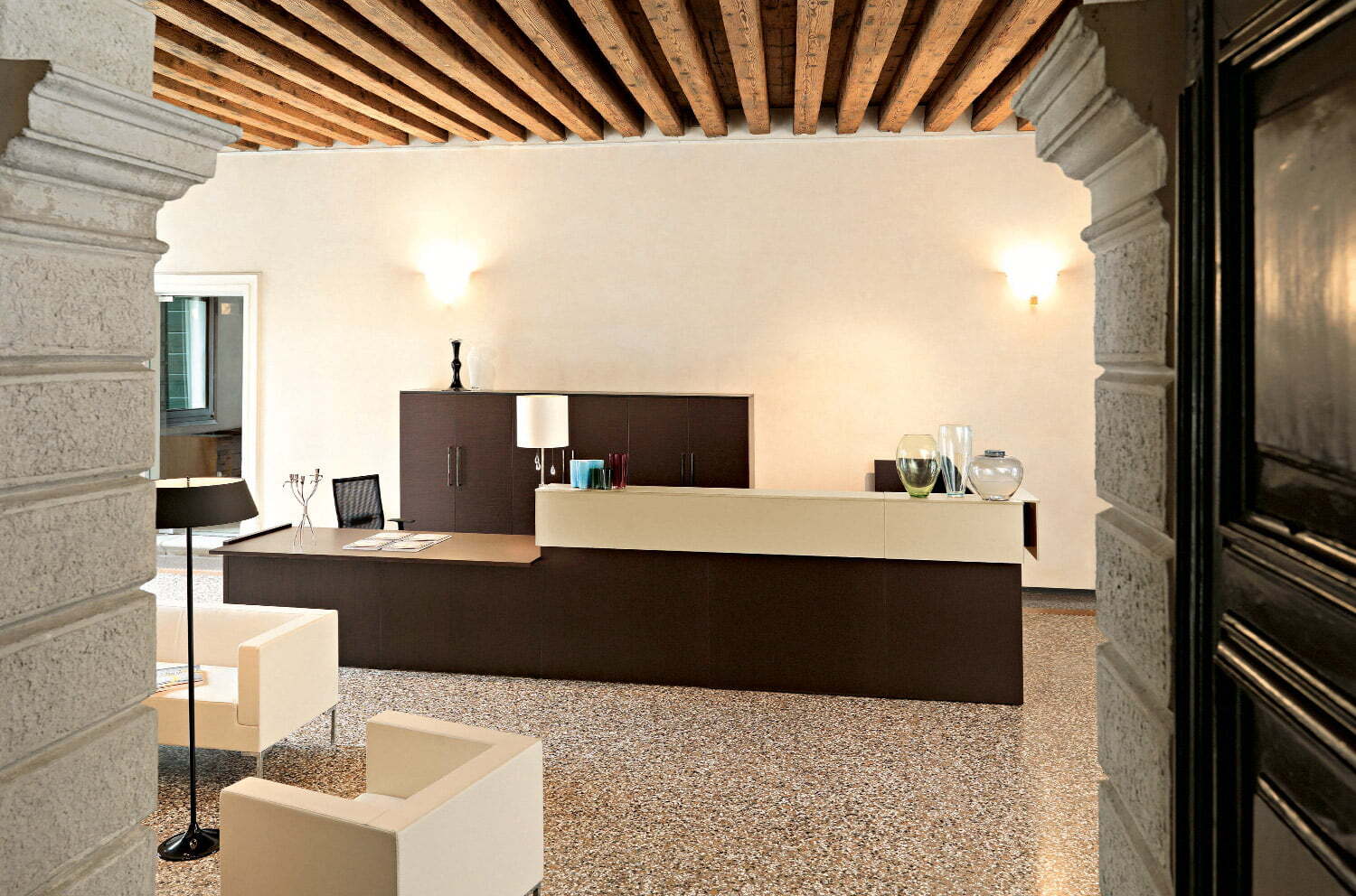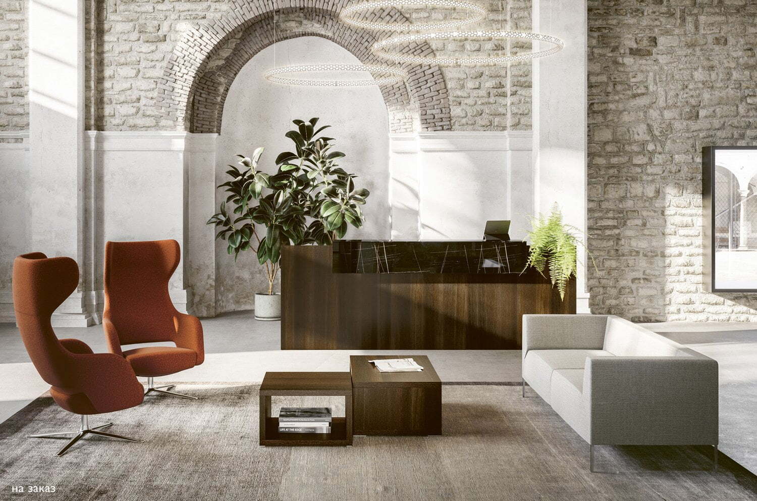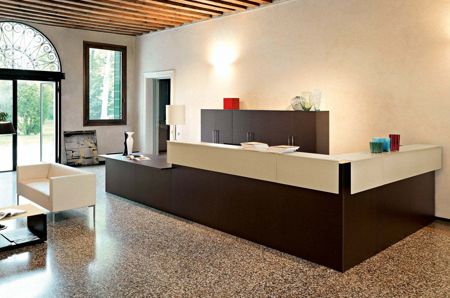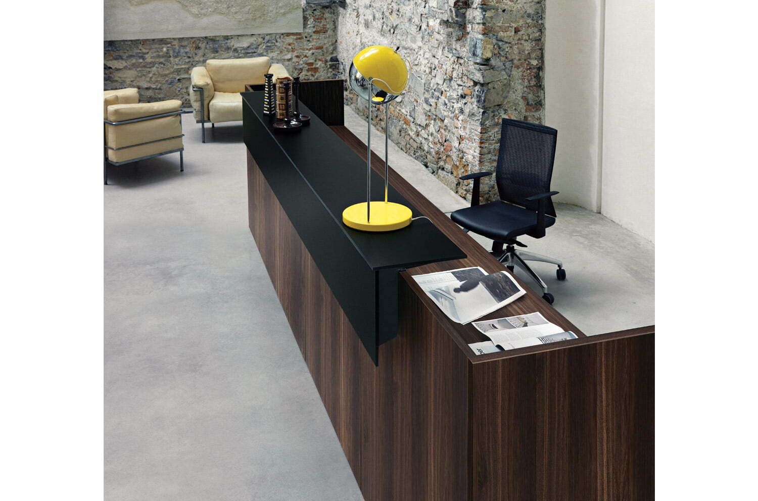 Современная коллекция мебели для приемных Factory Cotto с первого взгляда создает ощущение серьезности и выдержанного стиля.